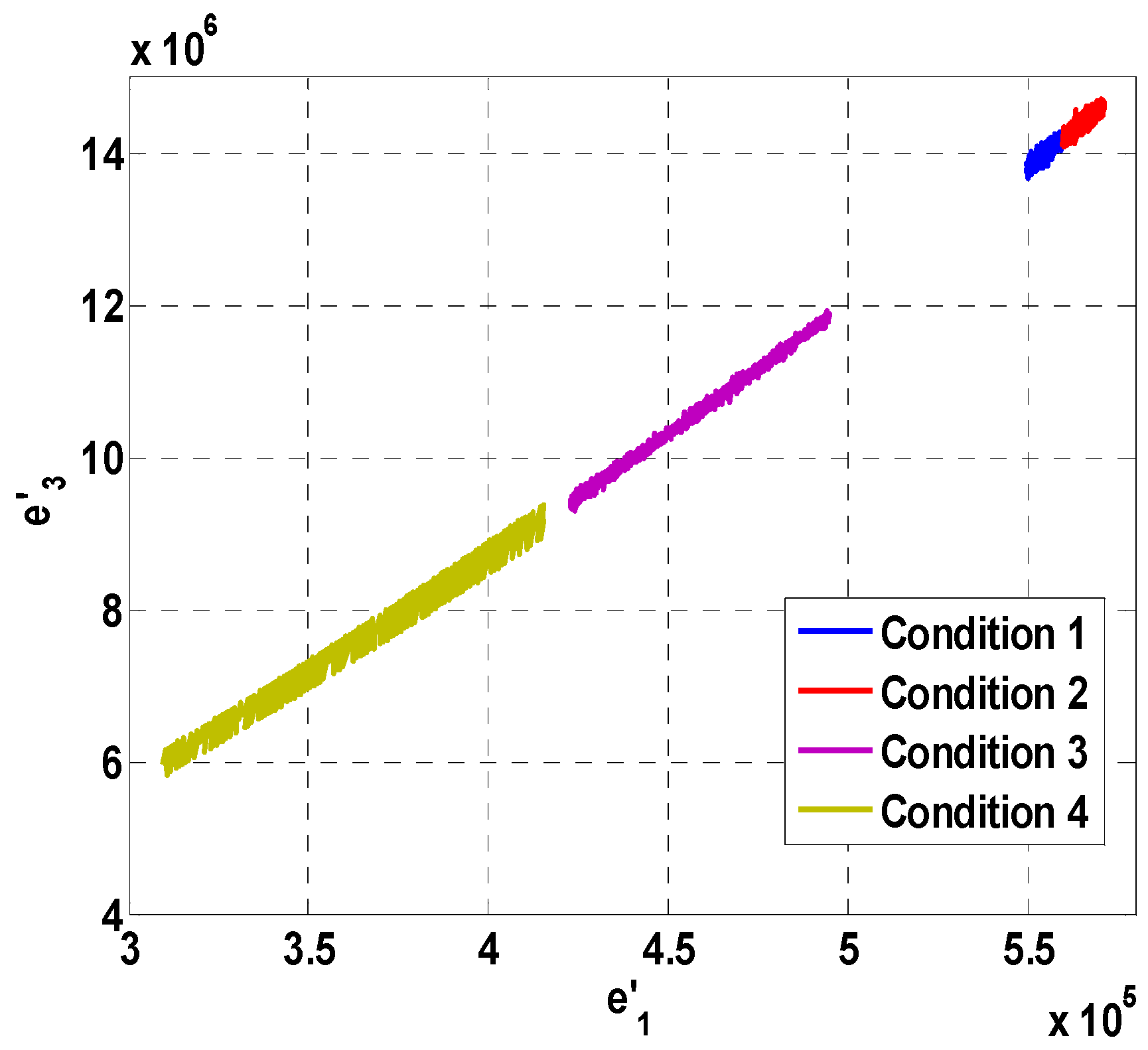 The Lorenz Master-slave chaotic system, where use has been made of trajectory as a characteristic value to identify wind turbine blade fault conditions and type, has been employed in this study. Traditional Lorenz chaotic system can be expressed by Equation (1) and the chaos synchronization method for fault diagnosis can be found in the references [35] and will not be discussed here: