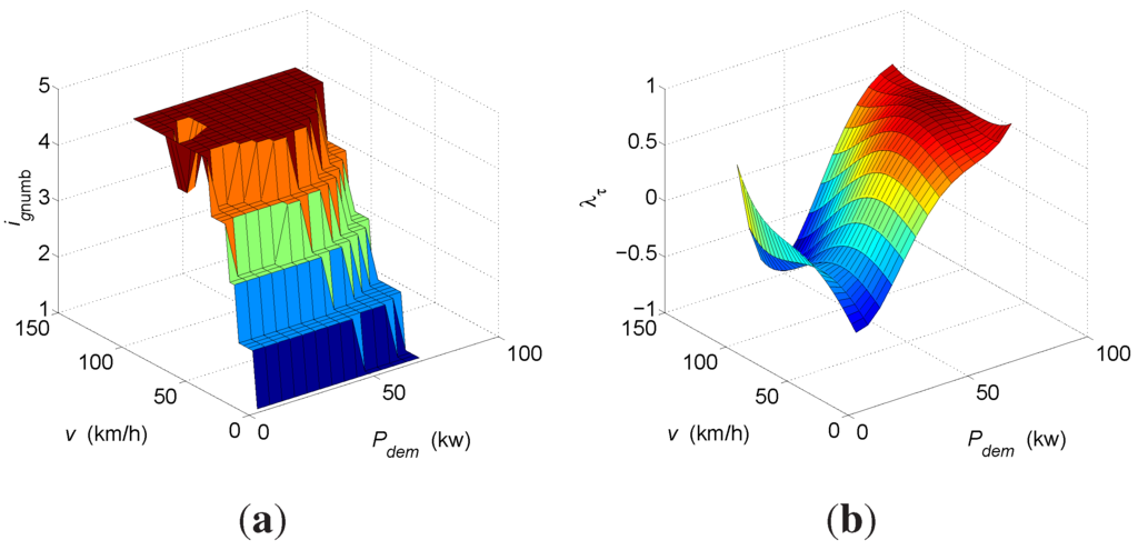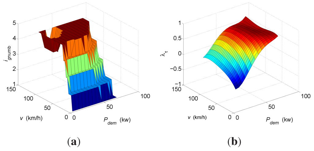 Since the cost function expressed by Equation (6) is the integral of the fuel and electricity consumption during a predictive time horizon T, the decision drawn from the maps thus will make the proposed performance, i.e., the fuel and electricity consumption, optimal in a predictive time horizon T.