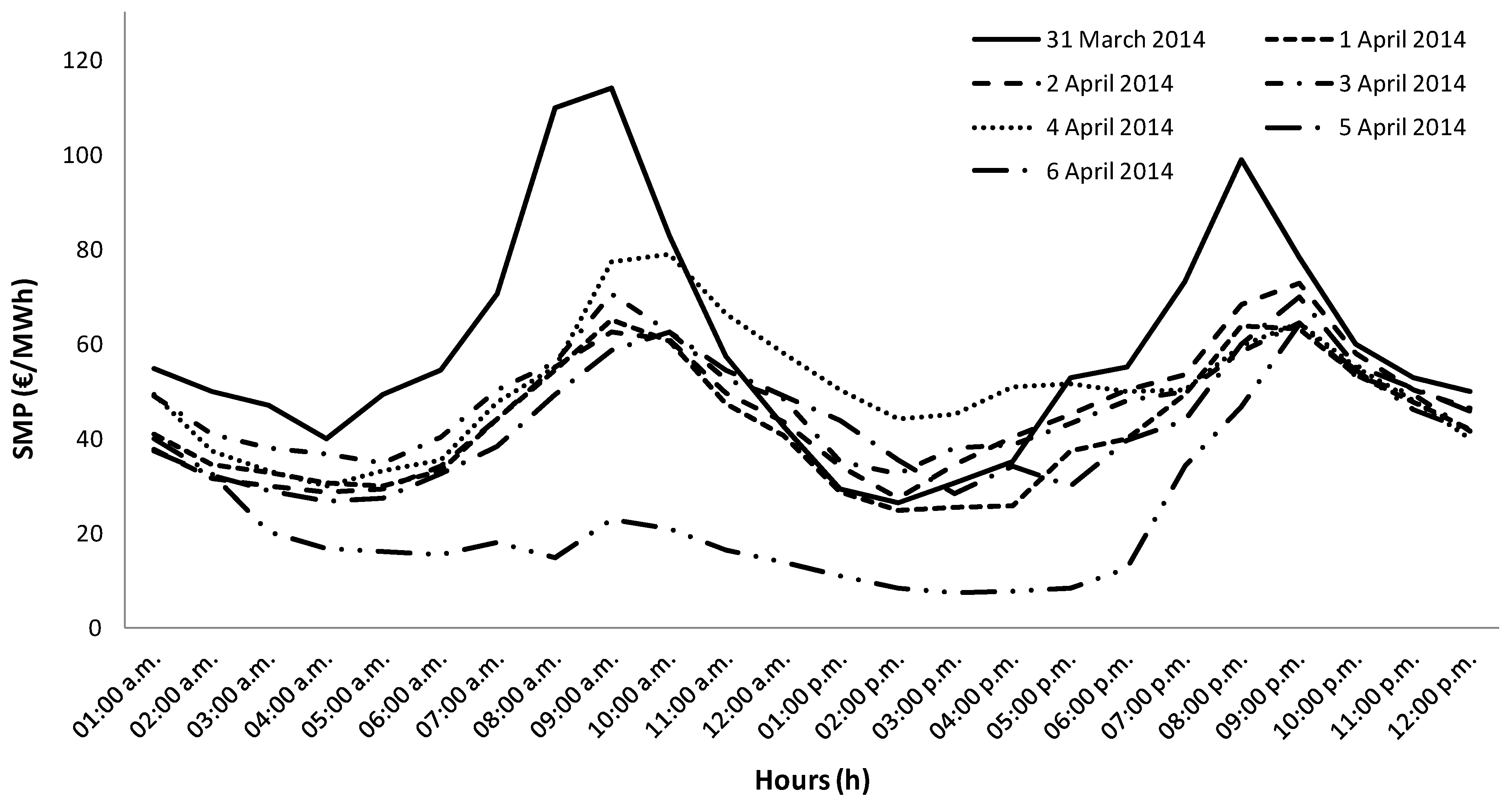 System marginal price (SMP) for the weekly period from 31 March to 6 April 2014.