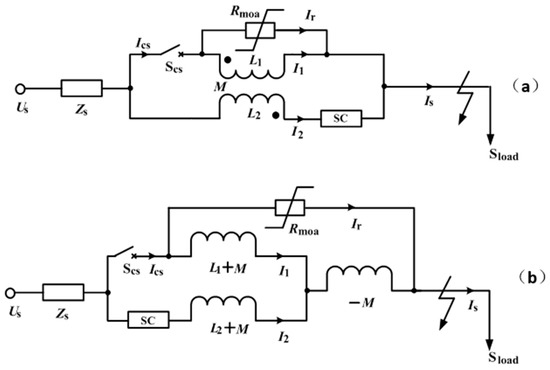 In the normal condition, the switch Scs is closed, and the current flowing through the SC will be lower than its critical current. As the SC is maintained in the zero-resistance state and non-inductive coupling can be achieved [33], the MOA is “short-circuited”, and the SFCL will not affect the main circuit.