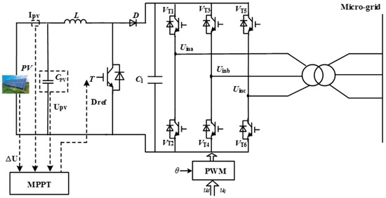Schematic configuration of a grid-connected PV generation unit for the micro-grid. MPPT, maximum power point tracking.
