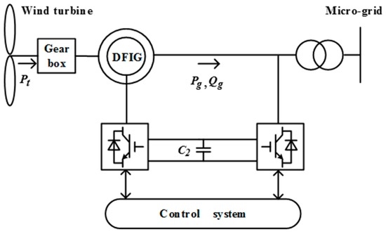 Schematic diagram of a doubly-fed induction generator (DFIG)-based wind turbine connected to the micro-grid.
