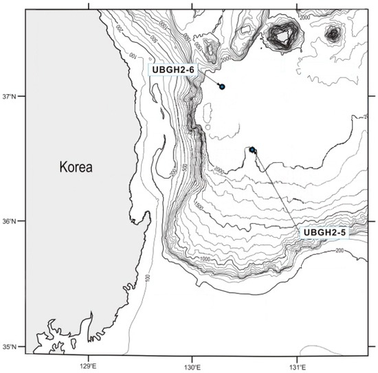 Locations of the study sites in the Ulleung Basin, East Sea, Korea.