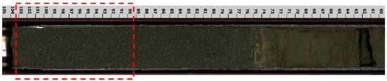The texture of the core section studied. The digital photo of the half-cut core section 2-6B-22R has been obtained from UBGH2 Scientific Report (Ryu et al. [4], courtesy of Drs. J. J. Park and J. Y. Lee, KIGAM).
