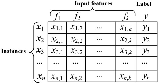 Finally, the features shown in Table 1 form the 34 input features for transient stability prediction. These 34 features are the descriptions of all the generated instances shown in Figure 1. The dataset can be expressed as (xi, yi), where i = 1,…, n, xi = [xij]1×34. To unify the original data from different variables with different dimensions and accelerate the conversion speed, the original data are usually normalized using Equation (6):