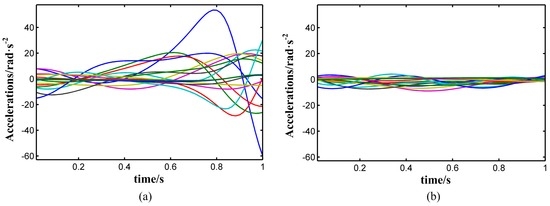 Generator rotor accelerations of 16-machine 68-bus system: (a) unstable case; and (b) stable case.
