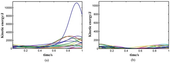 Figure 3, Figure 4, Figure 5 and Figure 6 show the variations of all the generator rotor angles, speeds, accelerations and kinetic energy of the 16-machine 68-bus system after the fault clearance. When the system is stable, the values of the rotor angles, speeds, accelerations and kinetic energy are low. However, the values of these quantities change drastically. This inspires us to extract the statistical features, such as maximum, minimum, variance etc. of the post-disturbance trajectories to construct the input features. Therefore, based on the statistics of the aforementioned rotor angles, speeds, accelerations, kinetic energy, 24 input features, f8–f31 shown in Table 1, are utilized for transient stability prediction.
