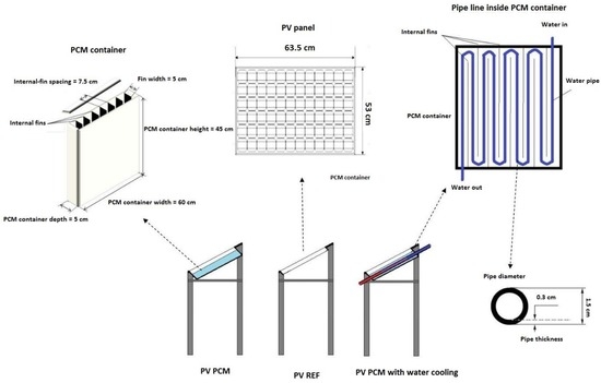 Qγ) calculated by Equations (9)–(11) are 15 kWh/day, 418 Wh/day and 429 Wh/day, respectively. The heat stored (418 Wh/day and 429 Wh/day) is in close agreement to the prevented heat loss (409 Wh/day and 419 Wh/day) by PV-PCM and PV-PCM-W, respectively, which proves the accuracy of our experiments.