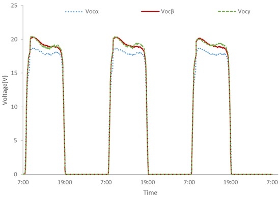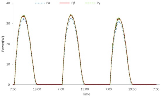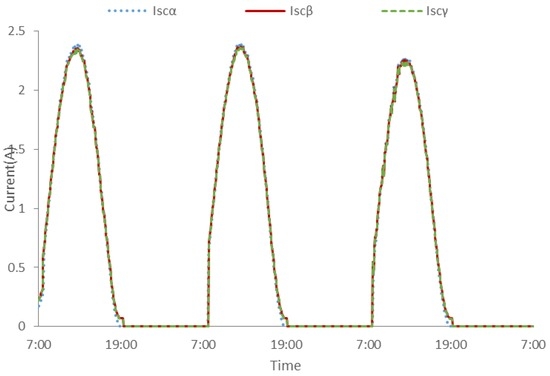Figure 8 shows a relatively negligible difference amongst the three systems apart from that at the peak. The reference PV maintained a slight higher current (