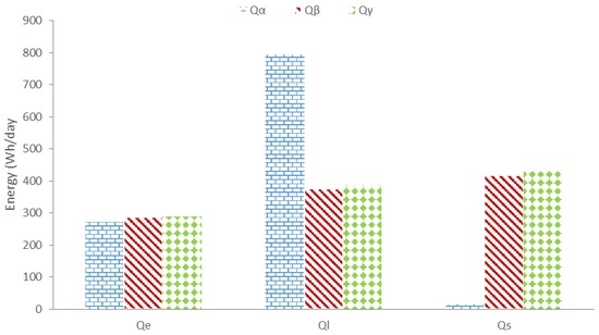 Qlγb, respectively). By combining the front and back surface heat losses, the total heat loss dropped from 794 Wh/day (reference PV) to 385 Wh/day in case of PV-PCM and 375 Wh/day for PV-PCM-W preventing a heat loss of 409 Wh/day and 419 Wh/day, respectively.
