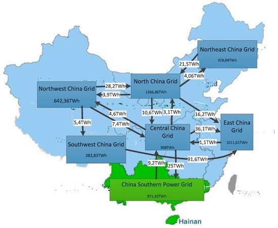 The transmitted electricity between regional grids in 2014. Source: Reproduced with permission from [6].