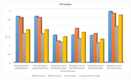 To identify the most critical postures, the PEI values of all the manual operations were calculated and reported in the bar chart of