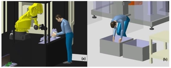 40], making it possible to numerically assess the ergonomic postures so that critical configurations can be identified and optimized through a proper layout reconfiguration. The Posture Evaluation Index allows us to identify whether a specific posture is deemed critical or not by integrating the results of the Low Back Compression Analysis (LBA) [