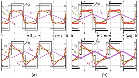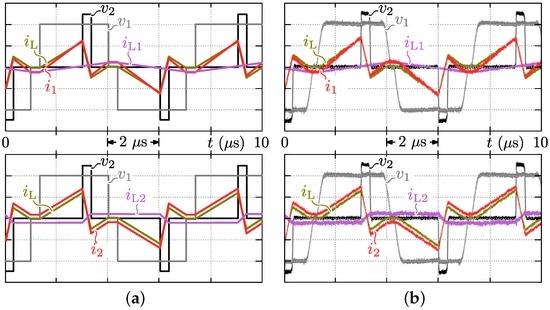 and , induced in commutation inductances and , are the purely reactive currents that are “injected” into the bridges of the DAB. As a result, the bridge currents and are calculated as: