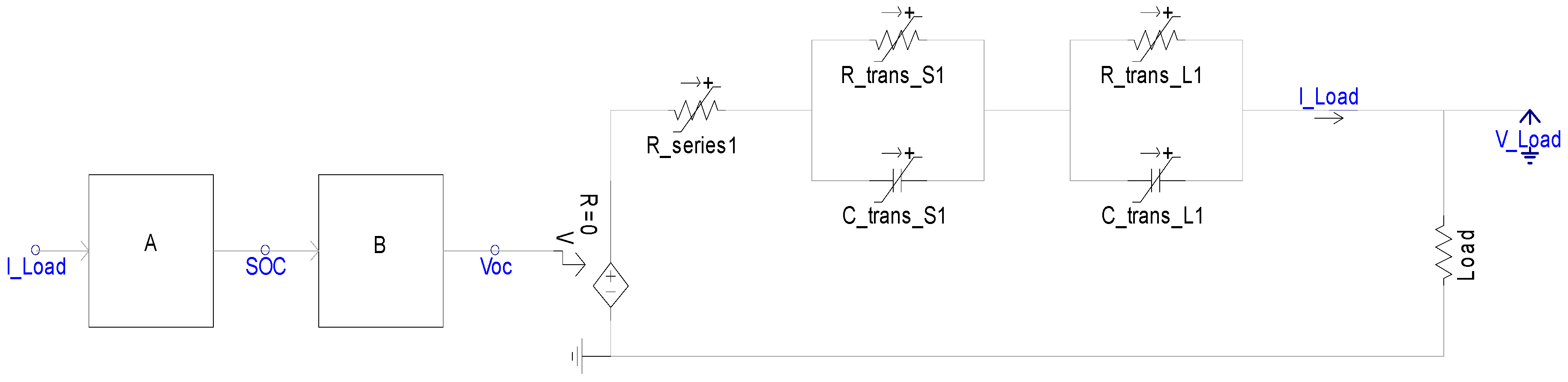26] to predict SOC throughout drive cycles for HEV simulations. It simulates the transient response to short duration loads of less than 1 s. Since time constants less than 1 s have no impact on the exponential dynamics of battery they can be avoided. A model proposed in [