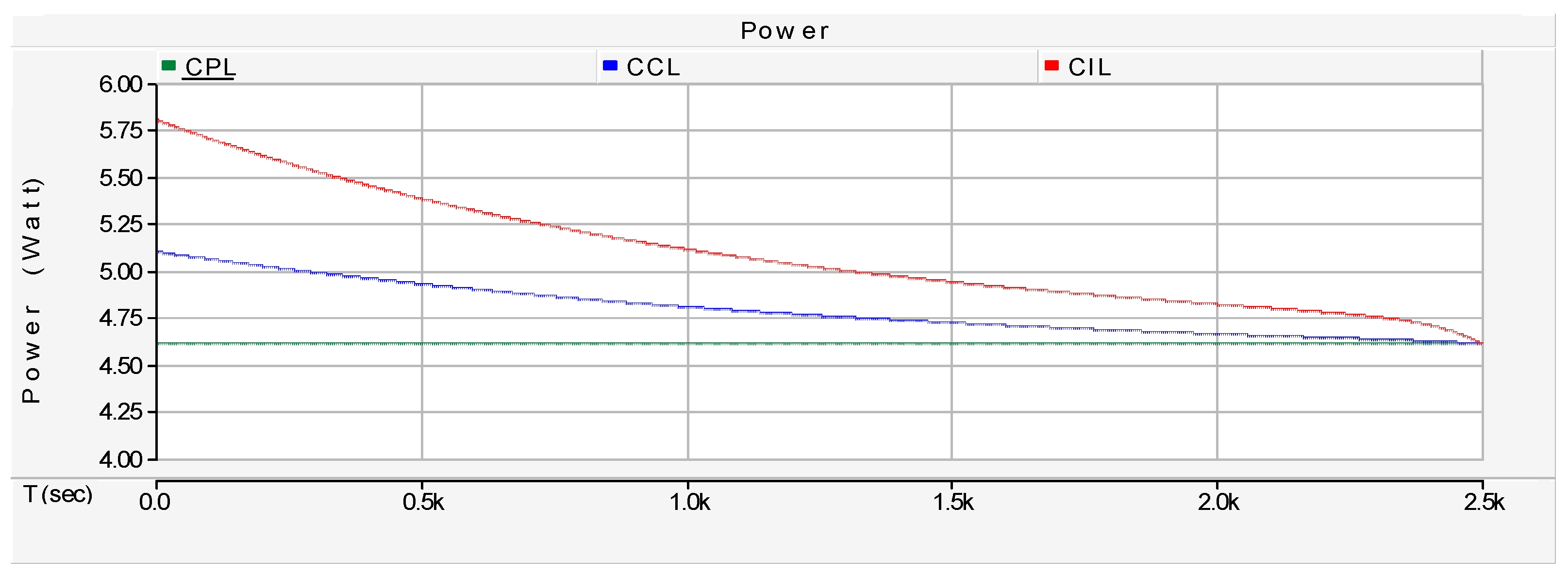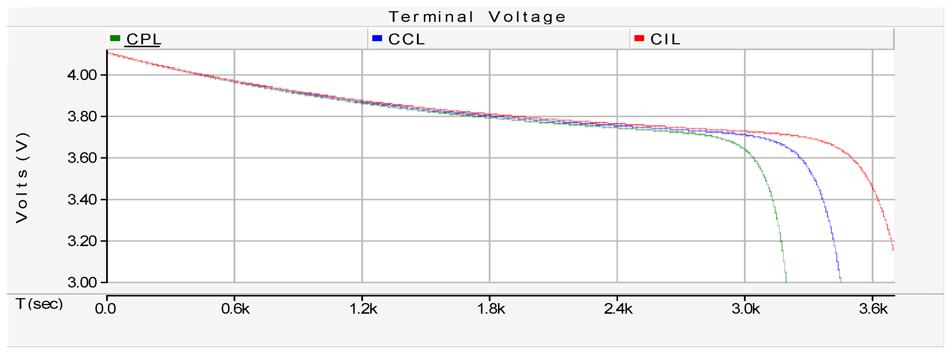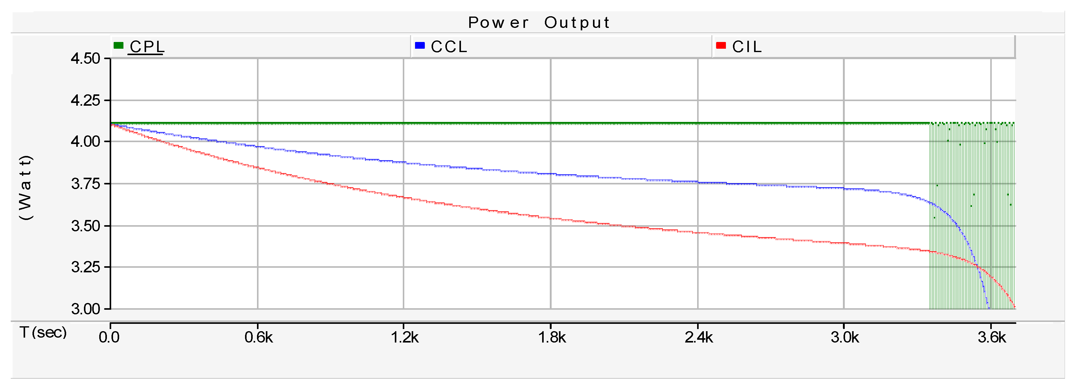 Figure 11, which shows that maximum value of discharge current for CPL is greater than that of CIL or CCL. The battery should be rated for maximum power based on the CPM. Two possible and significant cases are highlighted below to explore the issues caused by mode-ignorant power rating of the battery: