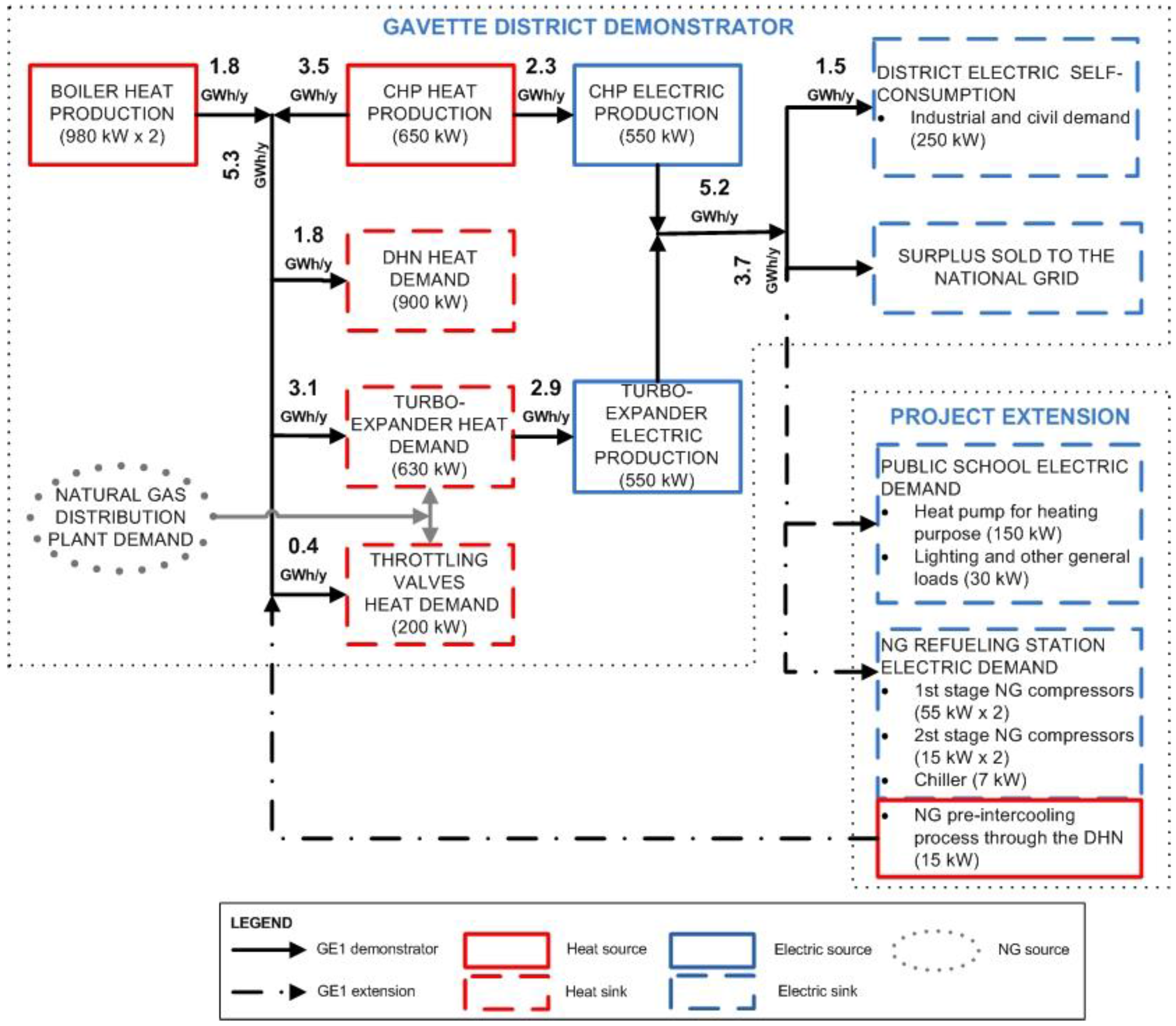 For this purpose, two different end-users have been identified: a public school and an NG station for private and public vehicles fueling; an energy flow diagram of the demonstrator upgraded by the extension is schematically shown in