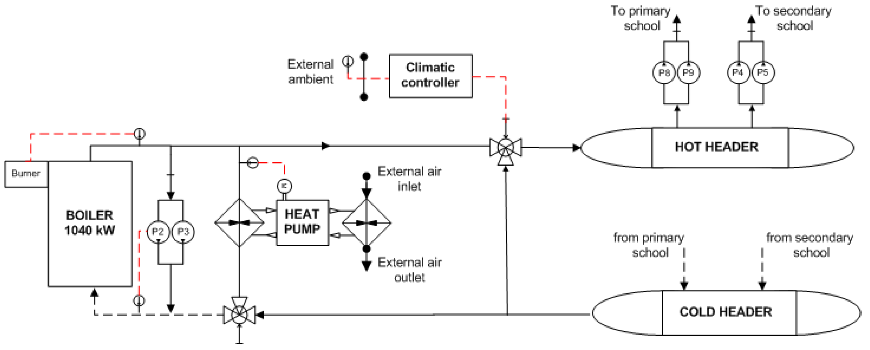 The design of possible improvements of the present thermal system has been developed according to two main principles: high economic feasibility and low impact on existing thermal plants and buildings. The new solution must therefore: