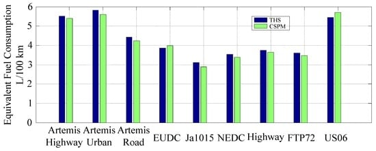 Then, we put the design parameters of the CSPM motor into the simulation model to calculate the power performance and fuel economy of the HEV. The dynamic performances and fuel economy between the HEVs based on THS and the CSPM motor are compared, as shown in