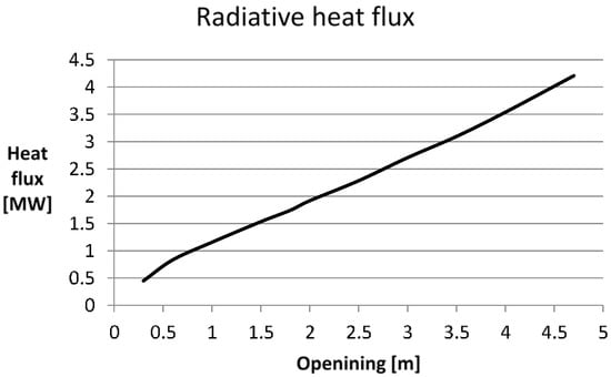 The values of the radiative energy, which passes through the opening of the door evaluated for the first 157 s and related to the complete opening of the door of 4.7 m, are reported in