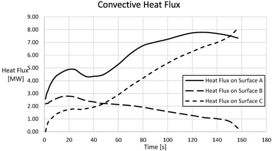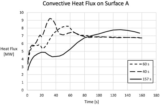 Figure 13 shows the trend of the convective heat flux on Surface A for the three different openings.