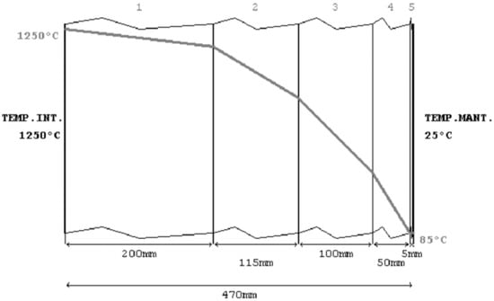 A typical insertion/extraction operation starts with the opening of the furnace door, continues with the movement of an extractable bogie hearth, then the positioning or the picking up of the products by means of an overhead travelling crane, and finally finishing with the insertion of the bogie hearth and the door closing. The time necessary to perform these operations depends on many factors, such as the dimensions of the ingots, the maneuvering time, the presence of faults and so on. From the analysis of the data available to SdF, it emerged that the time varies from about 10 min up to 1 h. In this time interval the furnace temperature decreases by hundreds of degrees, from 300 °C for brief openings, up to 700 °C for longer openings.