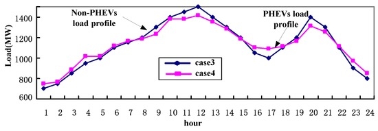 Figure 3 shows the influence of PHEVs on load curve. Figure 4 and Figure 5 are the system costs and emissions with PHEVs in different cases; Figure 6 and Figure 7 are the influence of PHEVs on cost and emissions in cases 3 and 4.