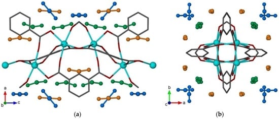 - Rosi, N.L.; Kim, J.; Eddaoudi, M.; Chen, B.L.; O'Keeffe, M.; Yaghi, O.M. Rod packings and metal-organic frameworks constructed from rod-shaped secondary building units. J. Am. Chem. Soc. 2005, 127, 1504–1518. [Google Scholar] [CrossRef] [PubMed]