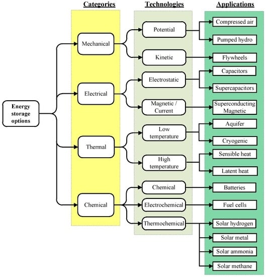 Categorization of energy storage options and applications.