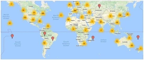 Global energy markets are rapidly changing. Renewable energy technologies now constitute more than half of the new power plants built worldwide each year [1]. Unlike hydro and geothermal renewable energy sources which show readily stable forms of energy over time, other renewable energy sources cannot be stockpiled and must be used when available or be regarded as lost energy potentials. The major restraint for increasing the share of renewable energy sources is their intermittency, which can be addressed through energy storage when available and energy use when needed. Therefore, to bring renewable energy sources (e.g., solar and wind) to independence and reliability, adequate energy storage technologies (ESTs) must be deployed. The role of energy storage systems in integration with renewable energy sources is more evident in the remote and stranded regions where connecting to the nationwide electricity grid is cost prohibitive. Although the energy is mostly required in the form of electricity, for economic reasons it is possible to convert the electricity and store it in another form of energy which can then be converted back to electricity when needed [2]. There are a number of well-established and enormous developing technologies offering significant potentials to enable energy storage in integration with various renewable sources (Figure 1). Present ESTs can be loosely categorized as either mechanical, electrical, thermal, and chemical systems [3]. Each category contains several technologies for consideration as outlined in Figure 1. Up to the beginning of 21st century, the only viable energy storage option was in the form of pumped hydro storage that is only practicable at certain topographic conditions. Today, around 1600 energy storage projects at different scales with a total capacity of approximately 193 MW are constructed worldwide (Figure 2) [4]. The feasibility of each energy storage application would highly depend on several factors including: the efficiency, energy capacity, energy density, run time, capital investment costs, response time, lifetime in years and cycles, self-discharge, and maturity of the technology. Flywheels, supercapacitors, and superconducting magnetics show the highest maximum efficiency, and fastest response times, however they have among the highest capital costs [3]. Pumped hydro storage systems have the highest capacity by a large margin, but are also among the least energy dense storage options. The storage technologies capable of providing continuous electricity supply for 24 h or more are underground compressed air energy storage, pumped hydro, fuel cells and high temperature thermal energy storage systems, However, they are expensive to place and build, with long construction time, and only suitable for large scale projects [5]. Batteries, overall, are widely used EST because they are clean, efficient, scalable, and can provide the stored energy instantaneously. However, they are relatively hindered by high costs, high rate of self-discharge, short lifecycle, and the presence of hazardous/toxic components in their assembly [5]. A life cycle assessment of batteries compatible with PV systems indicates that batteries are the most responsible for the environmental impacts, due to their relatively short lifespan and heavy metal content [6].