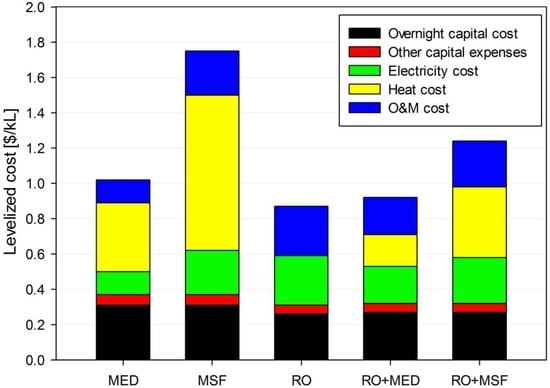 - Ihm, S.; Al-Najdi, O.Y.; Hamed, O.A.; Jun, G.; Chung, H. Energy cost comparison between MSF, MED and SWRO: Case studies for dual purpose plants. Desalination 2016, 397, 116–125. [Google Scholar] [CrossRef]