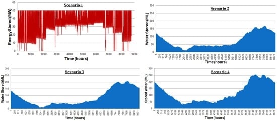 2.4. Scenario 4: Solar PV + Four Wind Turbines + RO Units + Water Storage Tanks