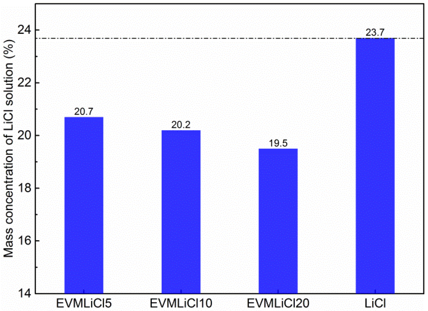 | Sample | EVM | EVMLiCl5 | EVMLiCl10 | EVMLiCl20 |