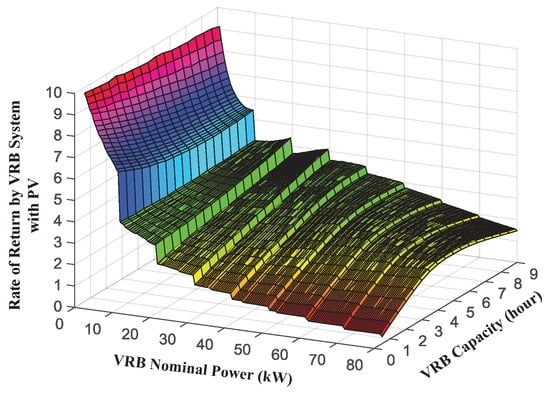 Rate of return (ratio between the net benefit and investment cost) of the VRB system with PV.