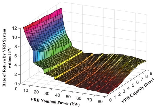 Rate of return (ratio between the net benefit and investment cost) of the VRB system without PV.