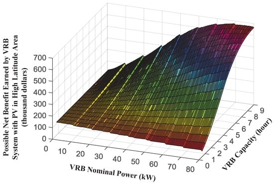 Net economic benefit earned by the VRB system with PV in a high latitude area (in thousand dollars).