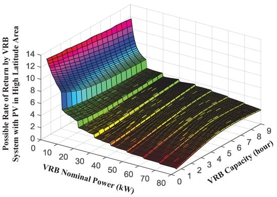 Rate of return (ratio between the net benefit and investment cost) of the VRB system with PV in a high latitude area.