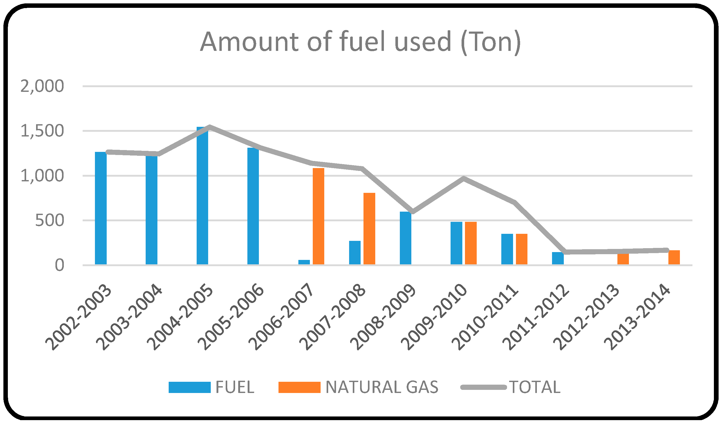 A characteristic of the boilers is their versatility in terms of fuel usage. The boilers are adapted for the use of different fuels, fuel or natural gas. Since 2005, the use of fuel was based on the prices offered in the production area. The decision to use different fuels between 2005 and 2014 is linked to the more accessible pricing during the required period.