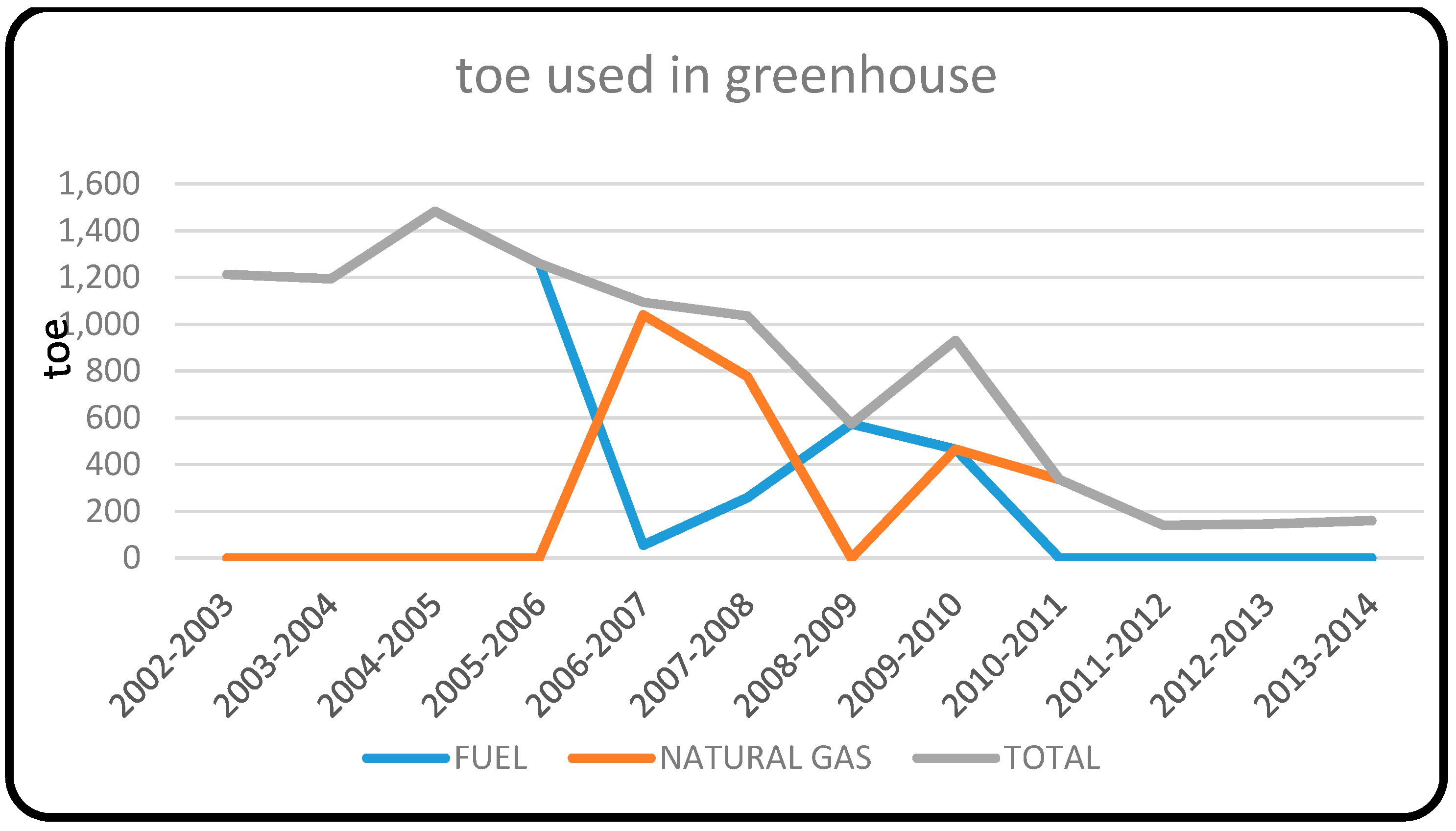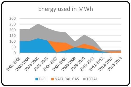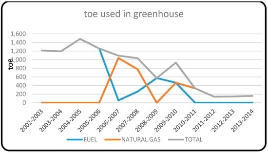 This participatory process analyzes the producers’ experience and represents 415 hectares of EA production, of which 65 hectares are ecological greenhouses. The information obtained from the greenhouses covered the production cycles from 2002 to 2014. The information between 2002 and 2007 is based on CA. EA starts from 2007 with the integration of the ecological cooperative. Information was gathered regarding the greenhouses’ type of production system, type of fuels used, the way in which they received the fuel, the use of fuel in tons of oil equivalent (toe) by period, and energy used by period (MWh). In order to study these, international Fuel and Natural Gas energy equivalents were considered.