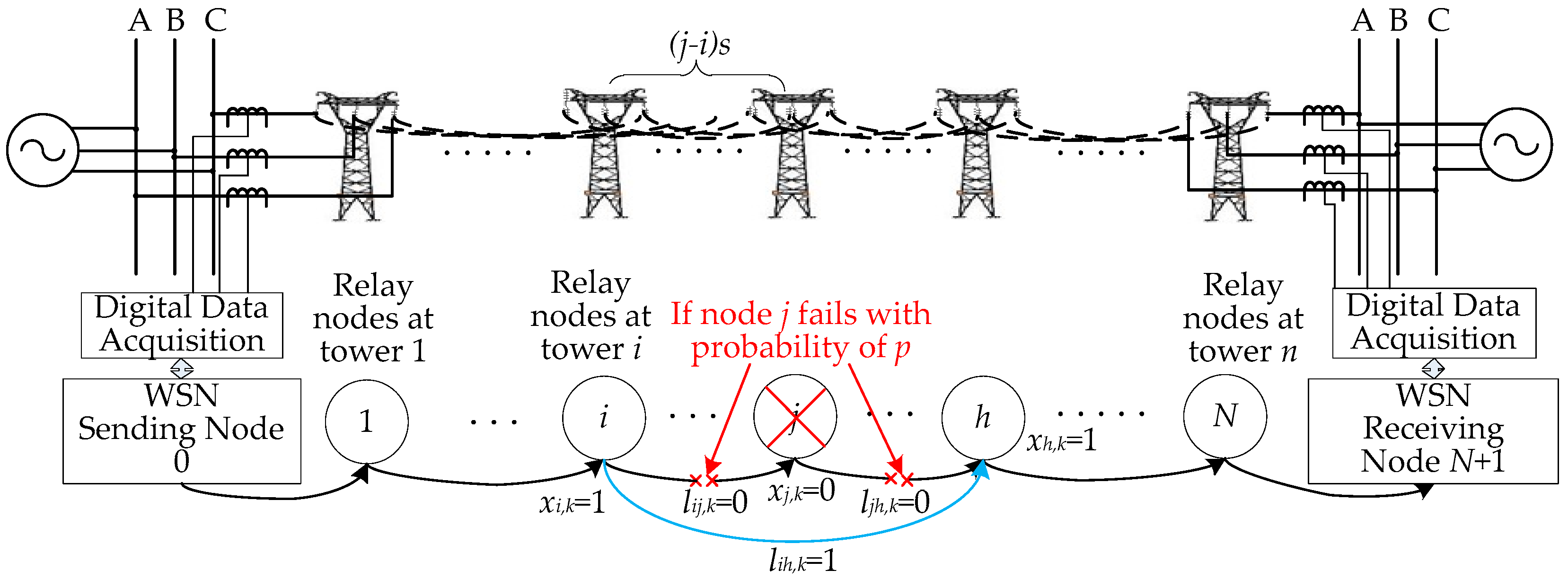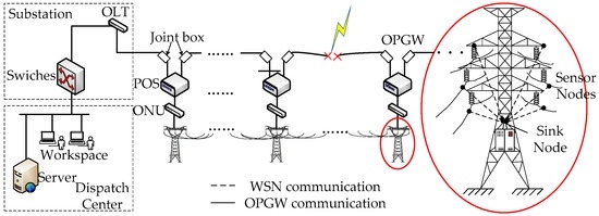 - During natural disasters, the OPGW is likely to be damaged, while the WSN nodes have redundancy and most of them can survive under natural disasters. In addition, taking the self-organized characteristic of WSNs into account, they can undertake the task of transmitting protection data.