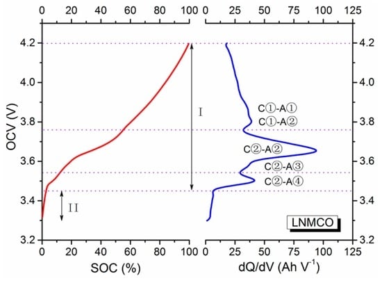 Figure 4 shows the SOC-OCV curve and corresponding dQ/dV profile of the novel lithium-ion batteries with NMC+LiCoO