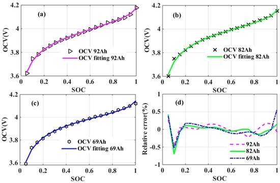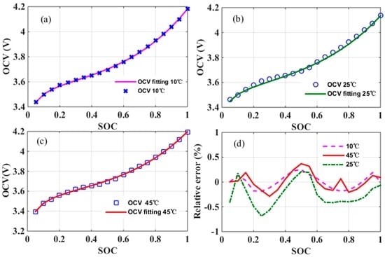 d in Equation (1). Only these four coefficients require tuning in real-time to arrive at the desired SOC-OCV mapping. The complexity of realizing Equation (1) has therefore been considerably reduced, which is certainly encouraged for real-time state estimation.