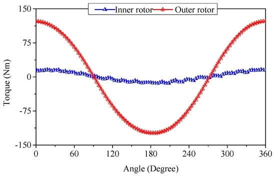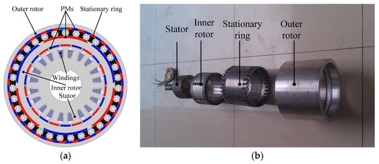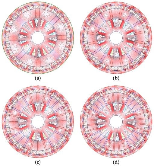 - Liu, G.; Jiang, Y.; Ji, J.; Chen, Q.; Yang, J. Design and analysis of a new fault-tolerant magnetic-geared permanent-magnet motor. IEEE Trans. Appl. Supercond. 2014, 24. [Google Scholar] [CrossRef]