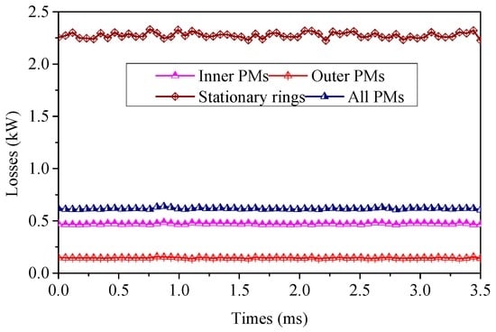 - Zhang, Y.Q.; Lu, K.Y.; Ye, Y.Y. Permanent magnet eddy current loss analysis of a novel motor integrated permanent magnet gear. IEEE Trans. Magn. 2012, 48, 3005–3008. [Google Scholar] [CrossRef]