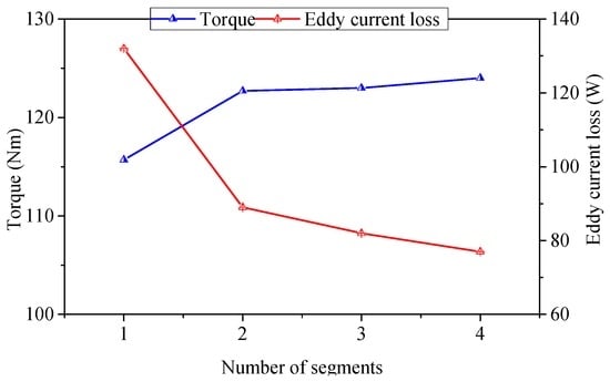 - Huang, W.Y.; Bettayeb, A.; Kaczmarek, R.; Vannier, J.C. Optimization of magnet segmentation for reduction of eddy-current losses in permanent magnet synchronous machine. IEEE Trans Energy Convers. 2010, 25, 381–387. [Google Scholar] [CrossRef]