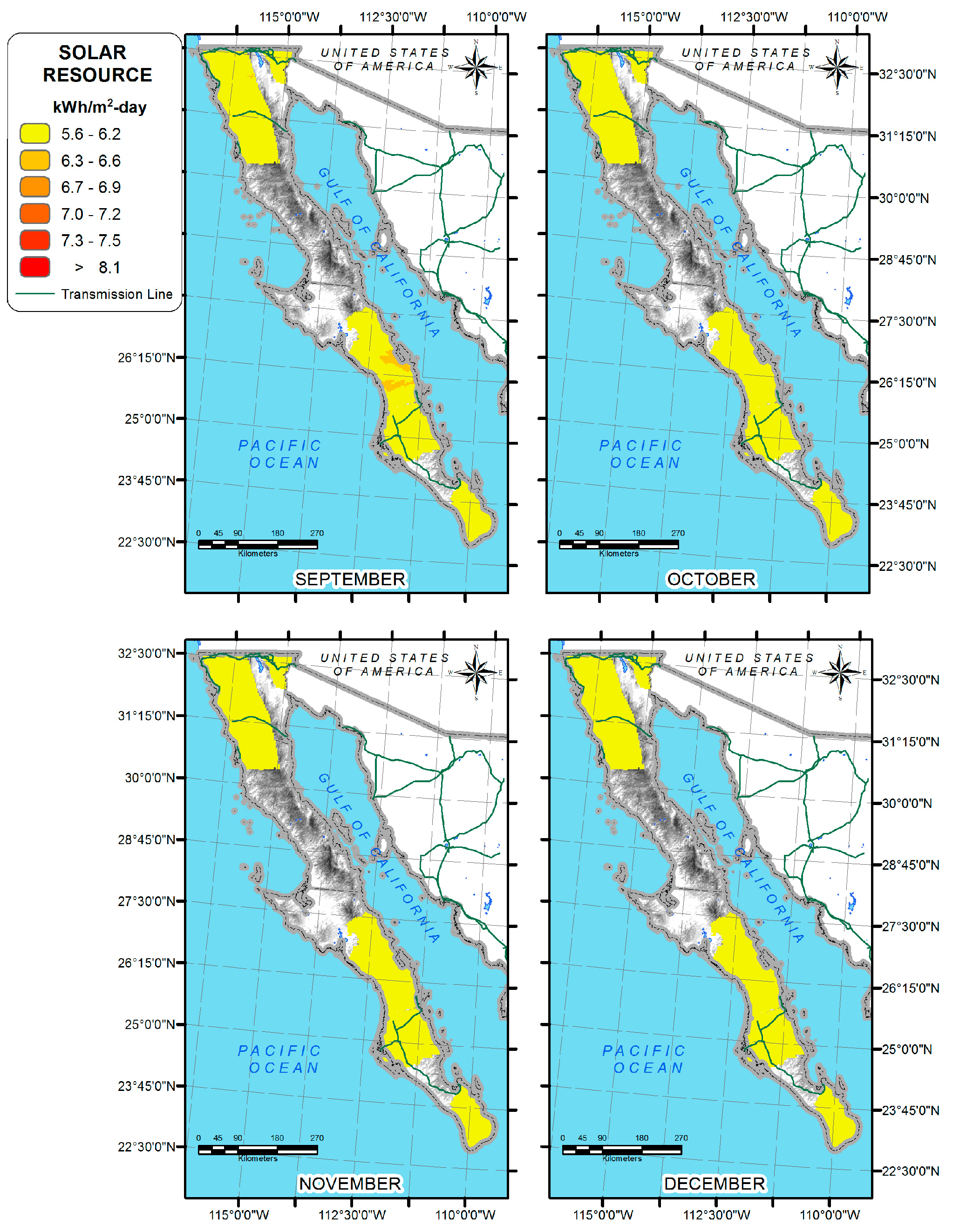 Irradiation at the Baja California Peninsula, September to December.