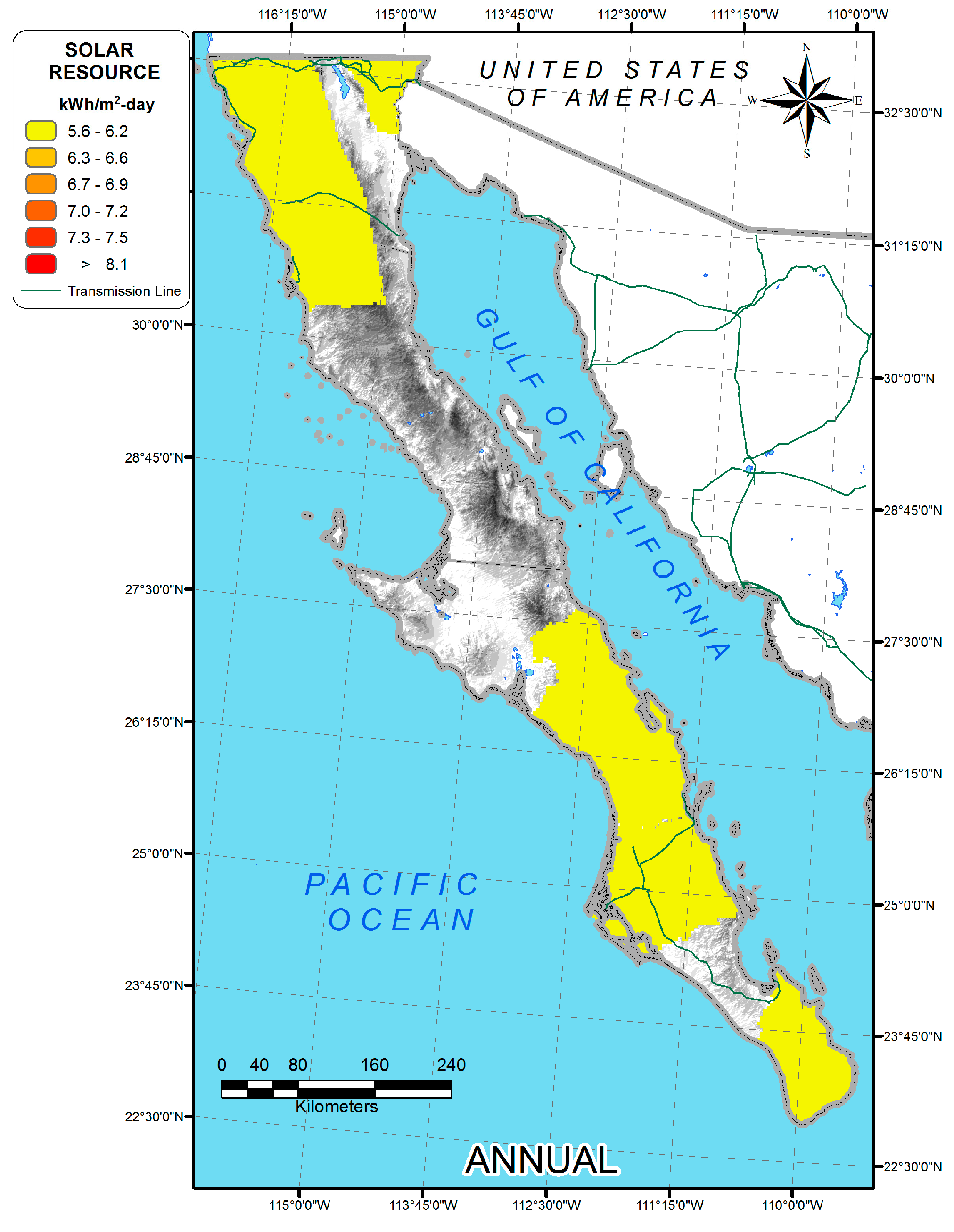Annual Irradiation at the Baja California Peninsula.