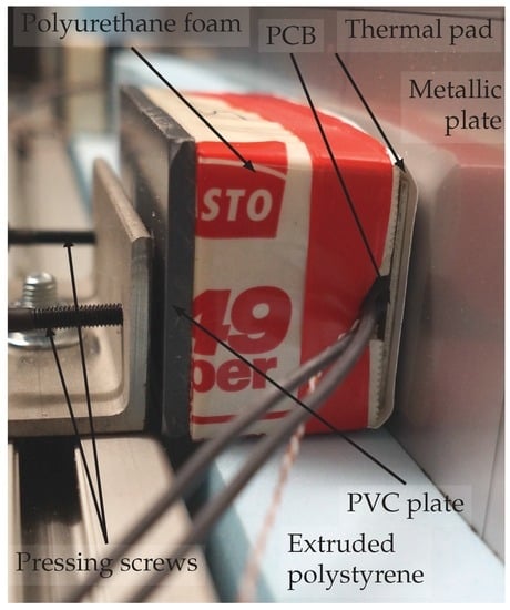 Between the heat source and the metallic plate, electrically-insulating 0.2 mm-thick thermal pads were used, to avoid electrical short circuits and to enhance the thermal contact. The thermal conductivity of the interface was 7 W/mK.