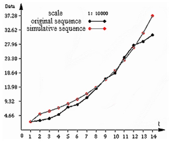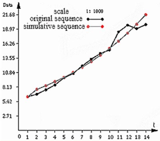 In addition, in Grey systems theory, the most common model is the Grey Model with First Order Differential Equation and one Variable model GM(1,1). The GM(1,1) requires only a few number of historical data and is used to predict exponential signals in real time. In this paper, we use GM(1,1) to predict carbon emissions and economic growth of equipment manufacturing during 2015–2024 to predict the trends of carbon emissions and economic growth in the equipment manufacturing sector for the next 10 years. Testing the original sequences during 2000–2014 for smoothness, we found that the original carbon emissions and economic growth sequences are smooth sequences, in which the accumulating generation sequence has an accurate index law (see Figure 2 and Figure 3).