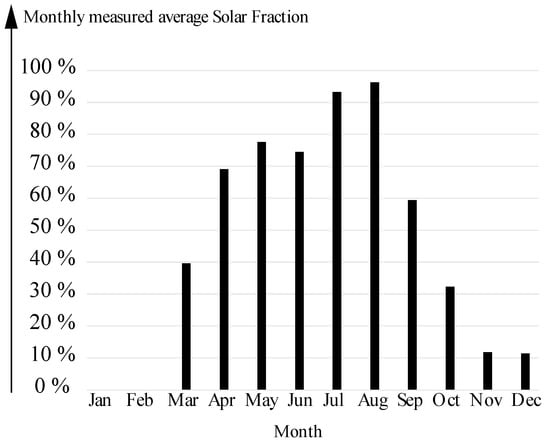 Measured monthly solar fraction of the retrofitted solar domestic hot water system.